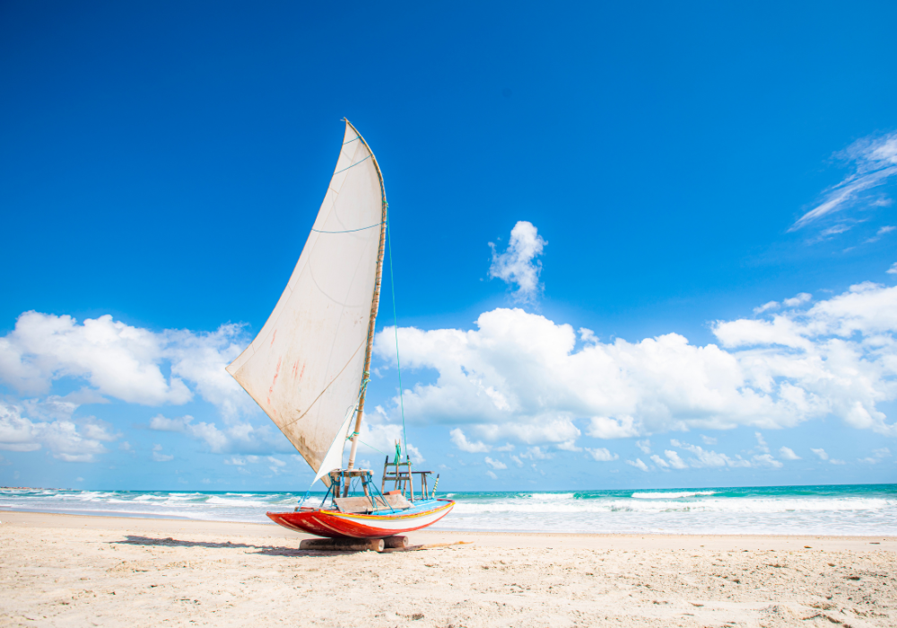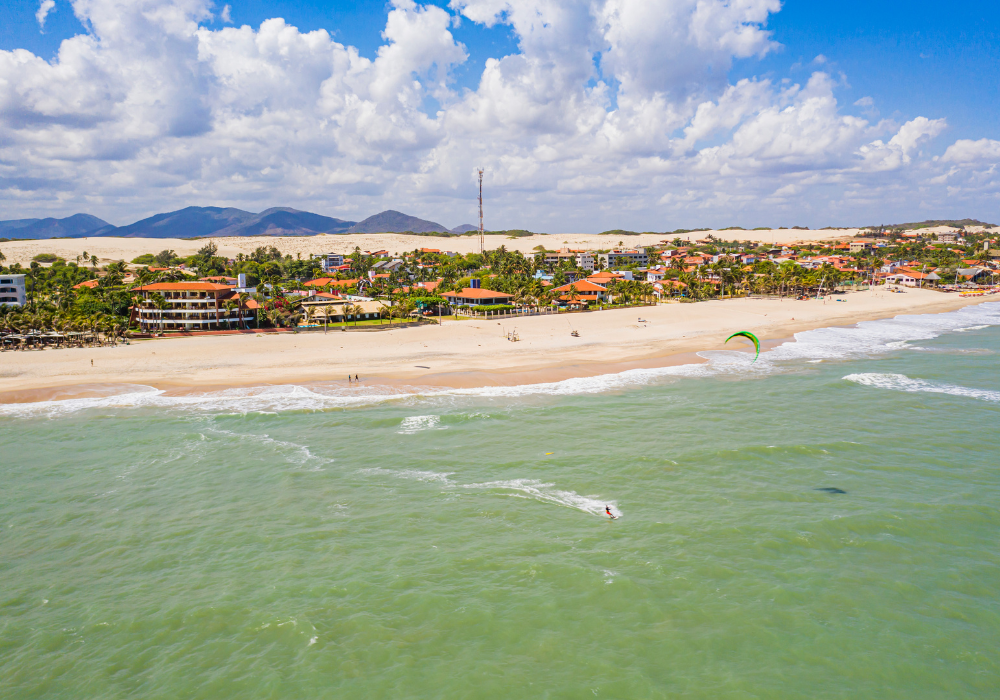 Canoa Quebrada is one of the most iconic destinations on Ceará’s coast. It’s known for its reddish cliffs and the moon-and-star symbol of the region. It offers buggy rides, jangada trips, and lively nightlife. Located about 2h30 from Fortaleza, it has a relaxed and tourist-friendly vibe. Ideal for those seeking beautiful landscapes and fun. You can visit on a day trip or stay a few days to enjoy it more fully.