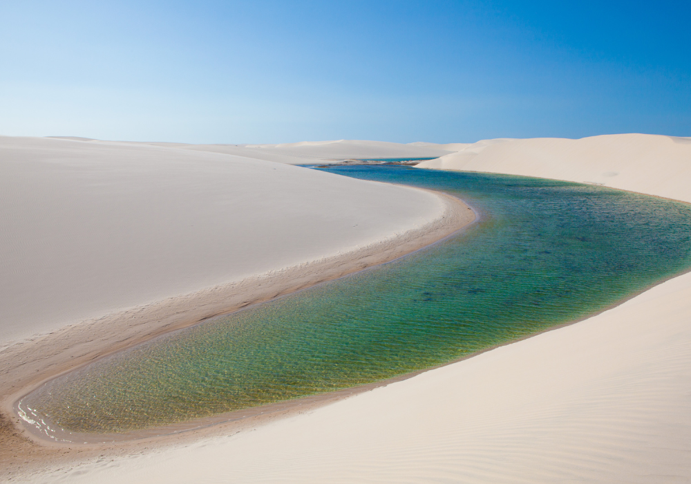 Lençóis Maranhenses is home to one of the most impressive landscapes in the world, with white sand dunes interspersed with crystal-clear freshwater lagoons. Located in northeastern Brazil, the national park offers a unique and seasonal natural experience, as the lagoons form after the rainy season.